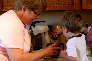 - his growing vocabulary - "Ampa! Cod ride - out - go! Come!" (as he takes your pointer finger and pulls you out!)